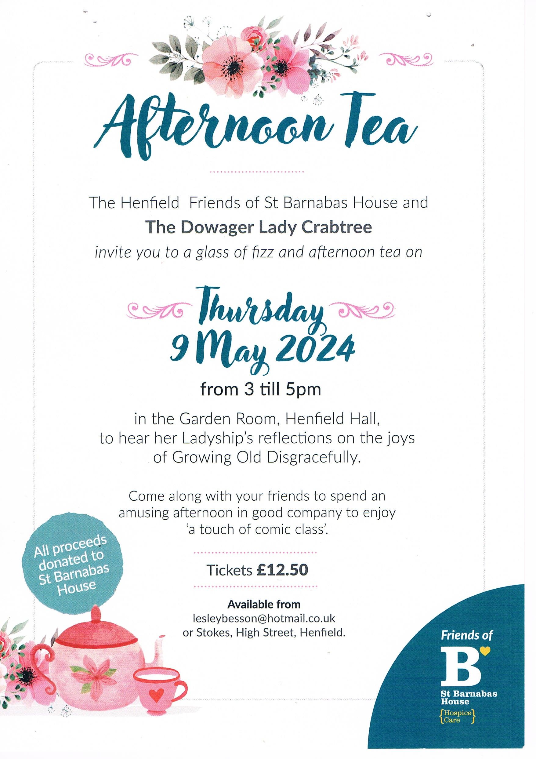 Lady Crabtree was delighted to help raise funds at an Afternoon Tea in Henfield, organised by Ladybirds Fundraisers, to raise money for St Barnabas Hospice.