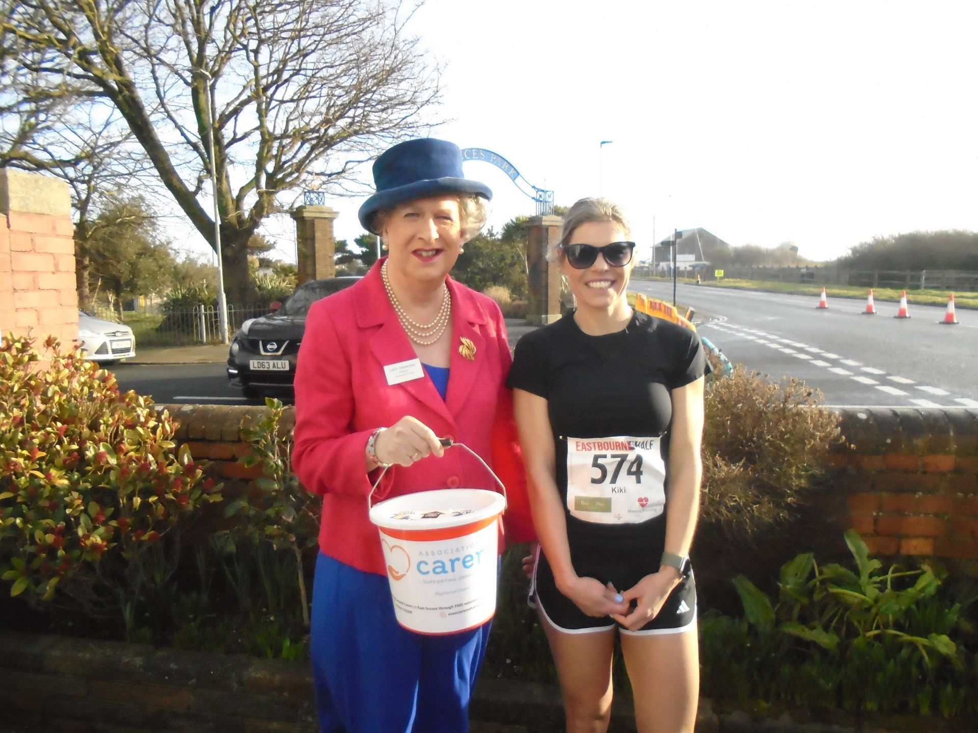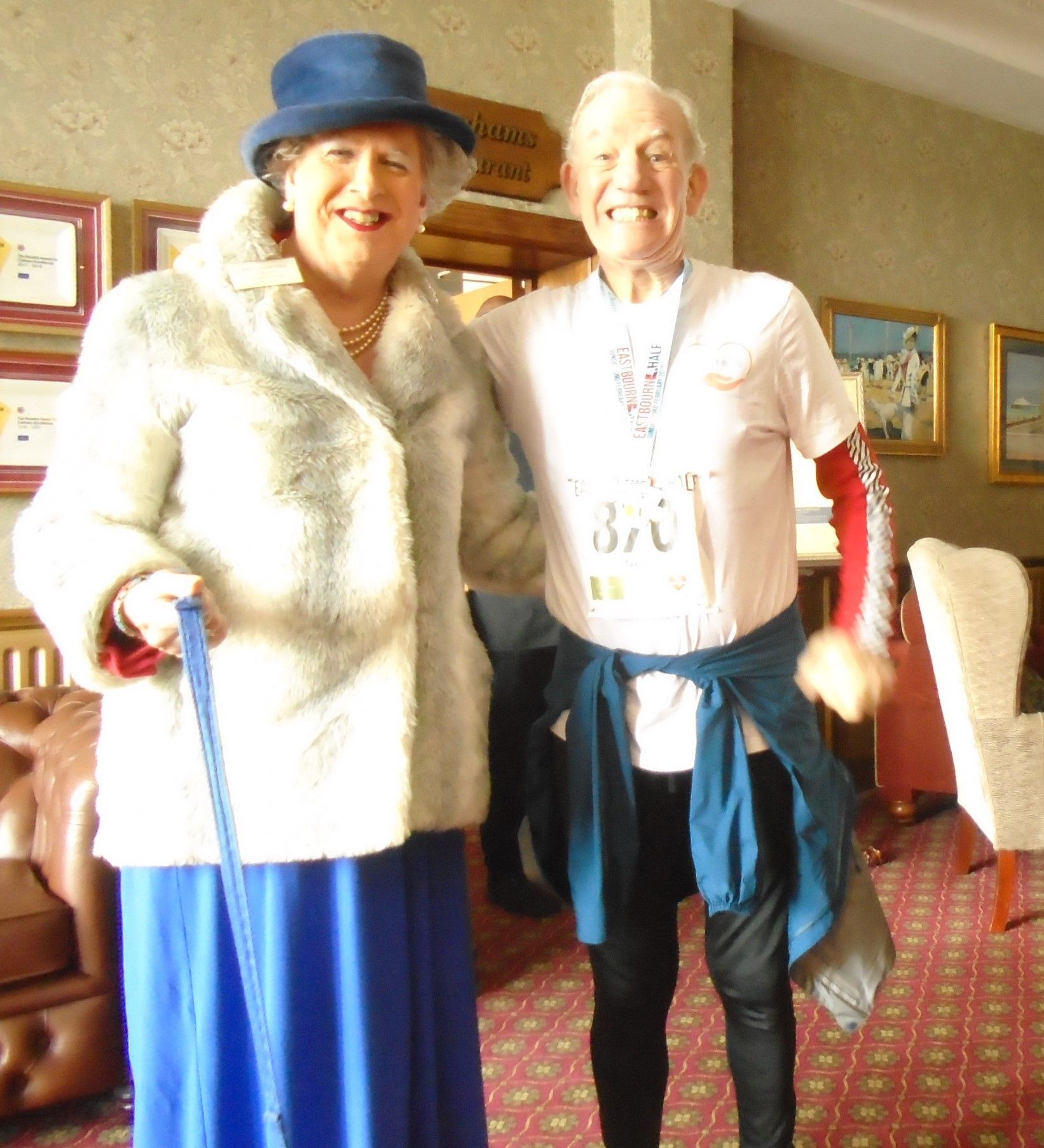 Lady Crabtree just before the start of the Eastbourne Half-Marathon on 23 February 2025, with Kiki who was running on behalf of the Association of Carers.