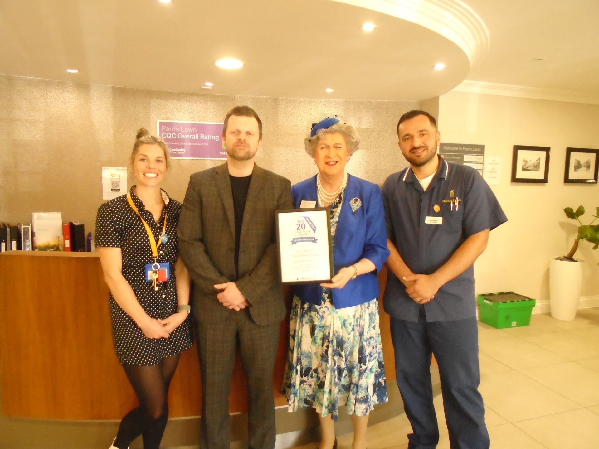 Presenting a certificate to Paris Lawn Care Home in Ringmer - they rank as one the top 20 Care Home Groups in the UK. This award is based on reviews from residents and their families, making it an especially meaningful achievement.