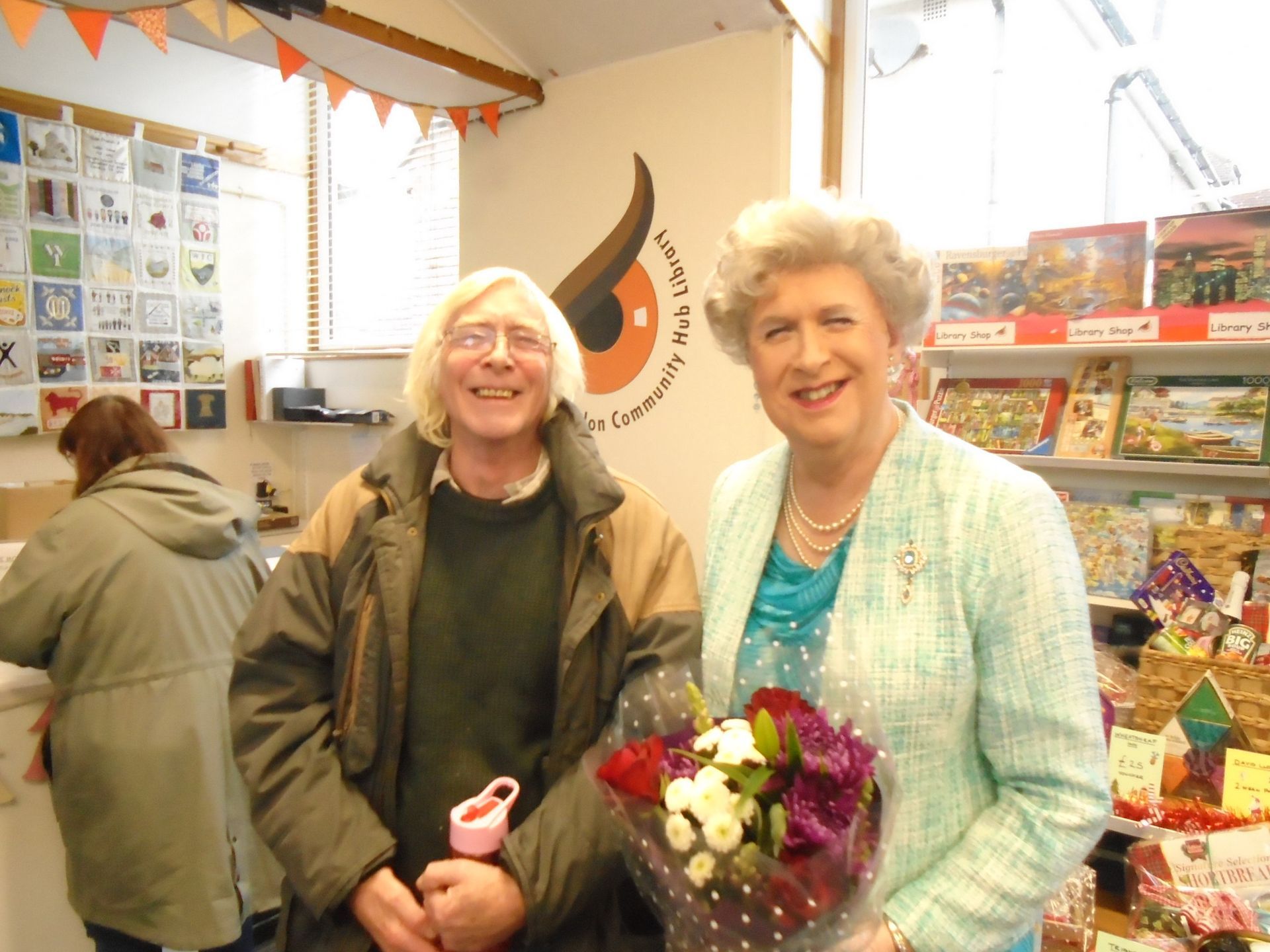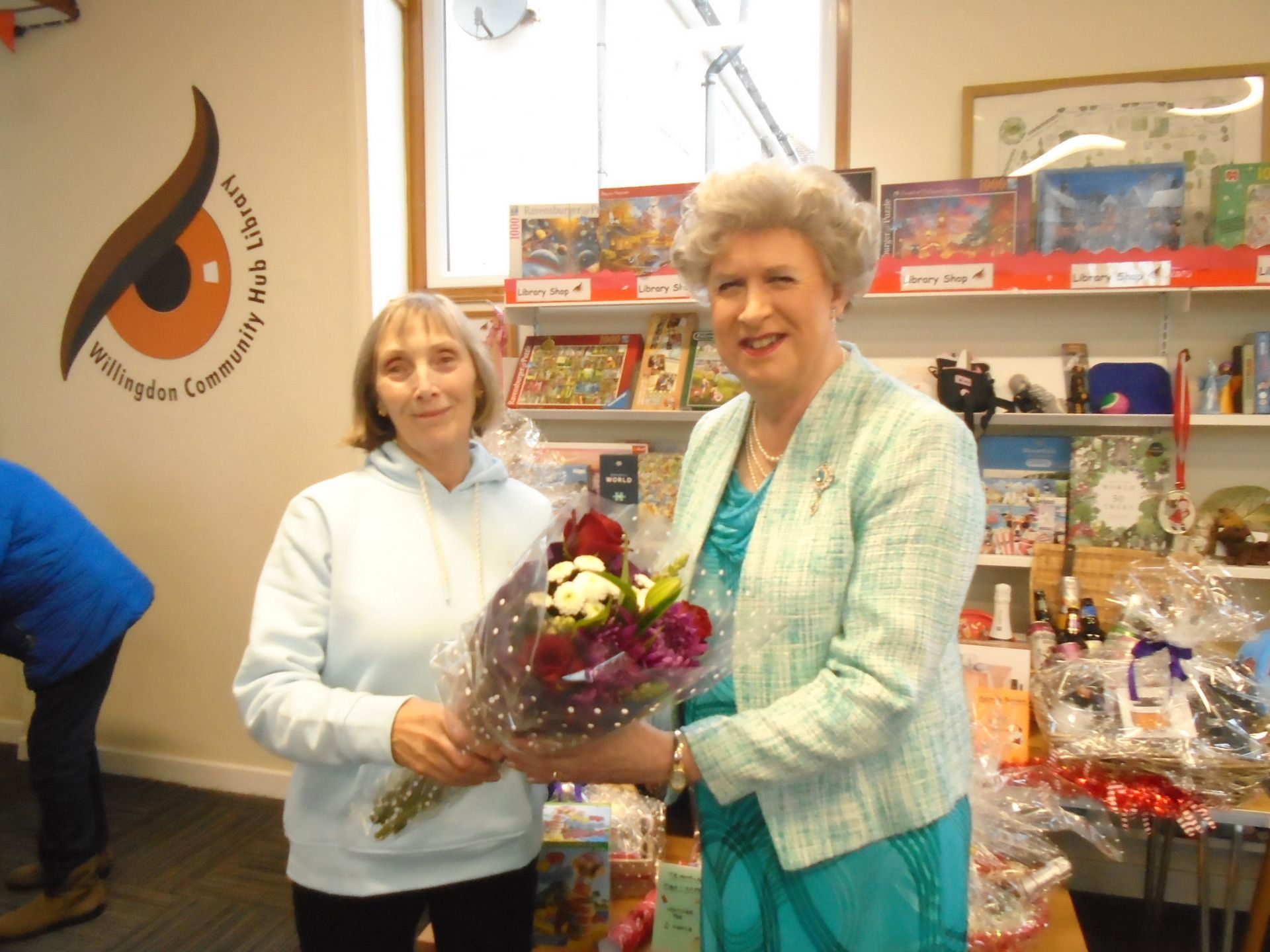 Receiving a bouquet from Linda of Willingdon Community Hub Library
